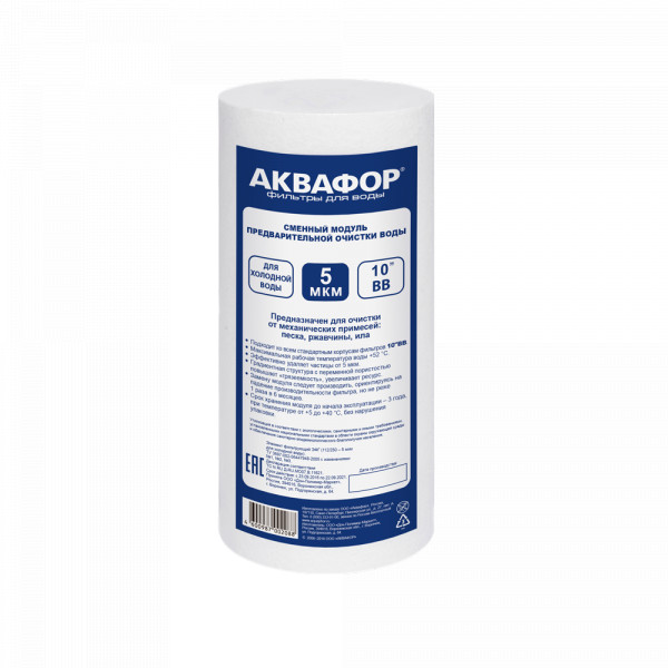 • Сменный модуль для очистки холодной воды от видимых растворенных взвесей - песка, ржавчины и других механических примесей. Обеспечивает базовую предочистку воды во всей квартире, при этом напор остается практически без изменений. В зависимости от степени загрязнения, выбирайте картриджи пористостью 5 или 20 микрон.